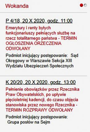 Trybunał Konstytucyjny nie zajął się dzisiaj kadencją RPO i nie rozpatrzył sprawy emerytur i rent dla funkcjonariuszy służb PRL.
