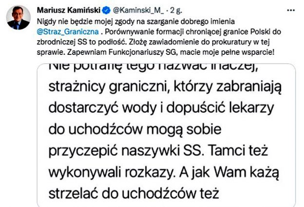 Dziennikarz porównał Straż Graniczną do SS. Mariusz Kamiński składa zawiadomienie do prokuratury!