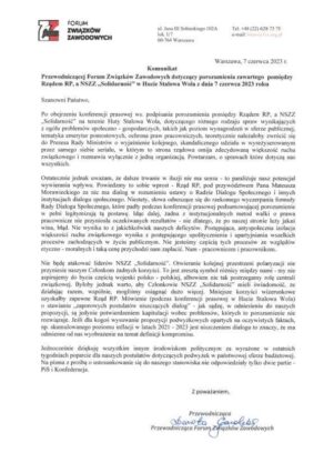 Forum Związków Zawodowych o porozumieniu „S” z Rządem.