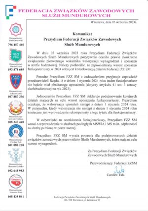 Komunikat Prezydium FZZ z dn. 05.09.2023