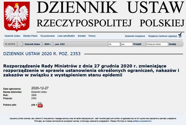 Nowe przepisy weszły dzisiaj w życie. Obostrzenia od 28 grudnia 2020′