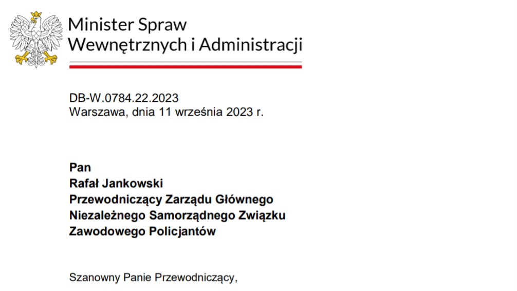 Pismo z MSWiA dotyczące przyszłorocznych regulacji uposażeń