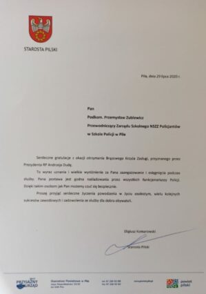 Przemysław Zublewicz uhonorowany w Starostwie Powiatowym w Pile
