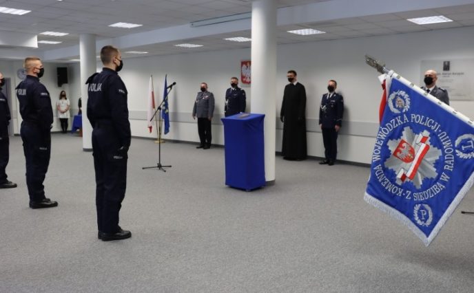 Radom – Ślubowanie nowych policjantów oraz wręczenie odznak „Zasłużony Policjant”
