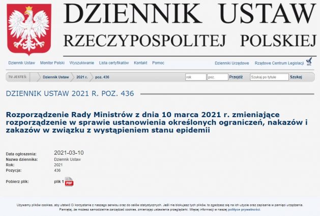 Rozporządzenie Rady Ministrów z dnia 10 marca 2021 r. – kolejne obostrzenia.