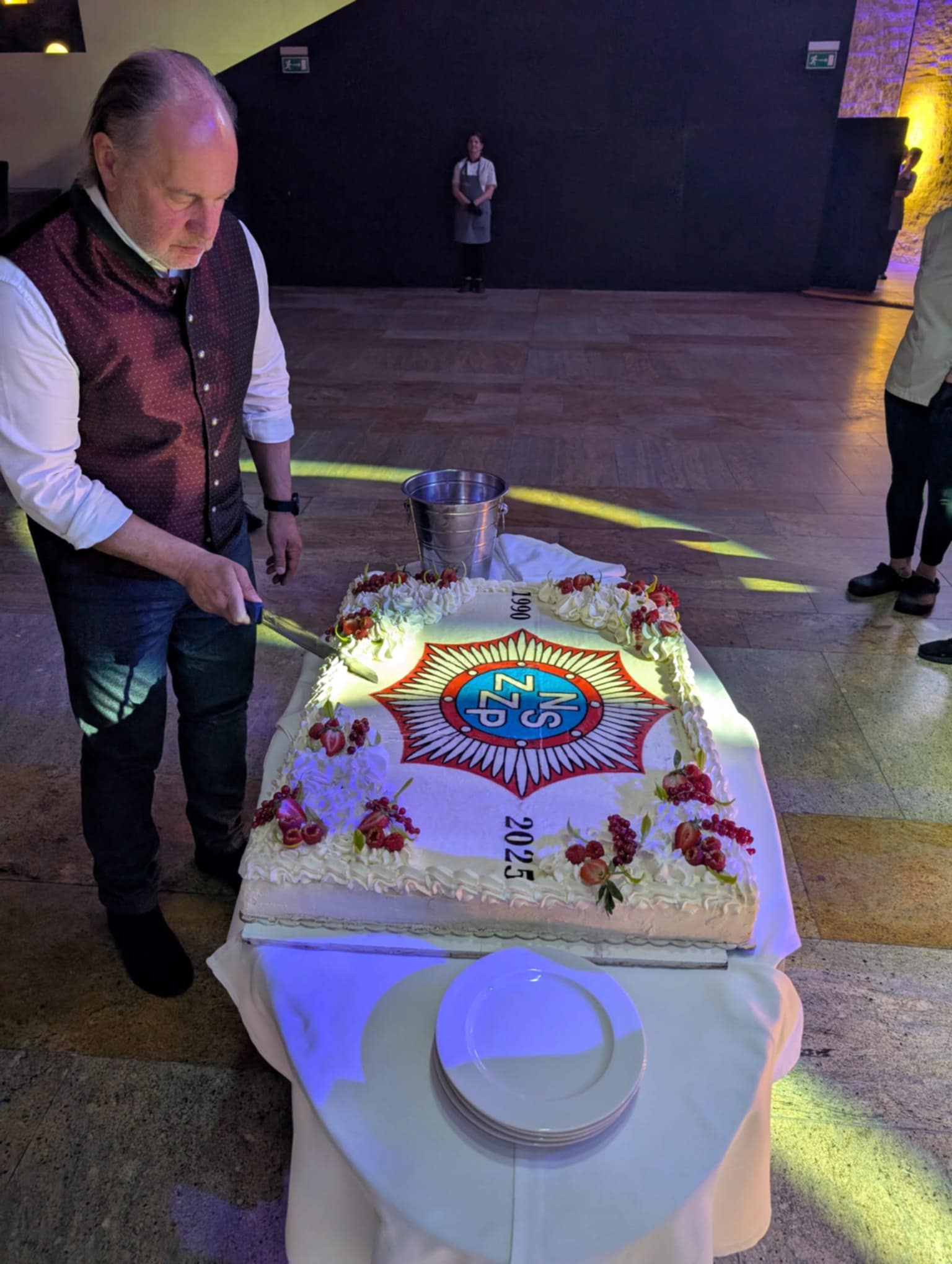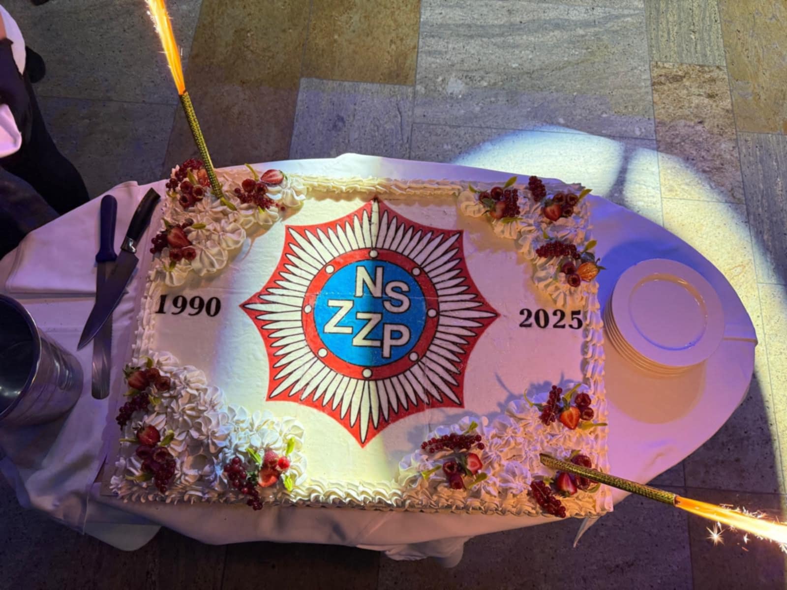 Następnie głos zabrał Wiceprzewodniczący Zarządu Głównego NSZZP Andrzej Szary, który jako jeden z dwóch obecnych na sali delegatów brał udział w historycznym zjeździe w Kiekrzu (9-10.I.1990 r.). Przewodniczący Zarządu Wojewódzkiego w Wielkopolsce zabrał wszystkich w wyjątkową podróż w przeszłość wspominając początki ruchu związkowego, walkę o rejestrację a potem kształtowanie wciąż obowiązującej Ustawy o Policji. W przemówieniu Andrzej Szary wyraźnie podkreślił wieloletnie zaangażowanie na rzecz pozytywnych zmian, które w naszej formacji w przeważającej mierze wprowadza Niezależny Samorządny Związek Zawodowy Policjantów. W trakcie kolacji pojawił się również tort przygotowany specjalnie na tę okoliczność, który symbolicznie podzielił Rafał Jankowski. Klamrą tego wyjątkowego, przepełnionego wspomnieniami i podziękowaniami wieczoru był energetyczny występ Need for Strings, zespołu łączącego klasyczne brzmienie instrumentów smyczkowych z pulsującym rytmem współczesnych hitów.