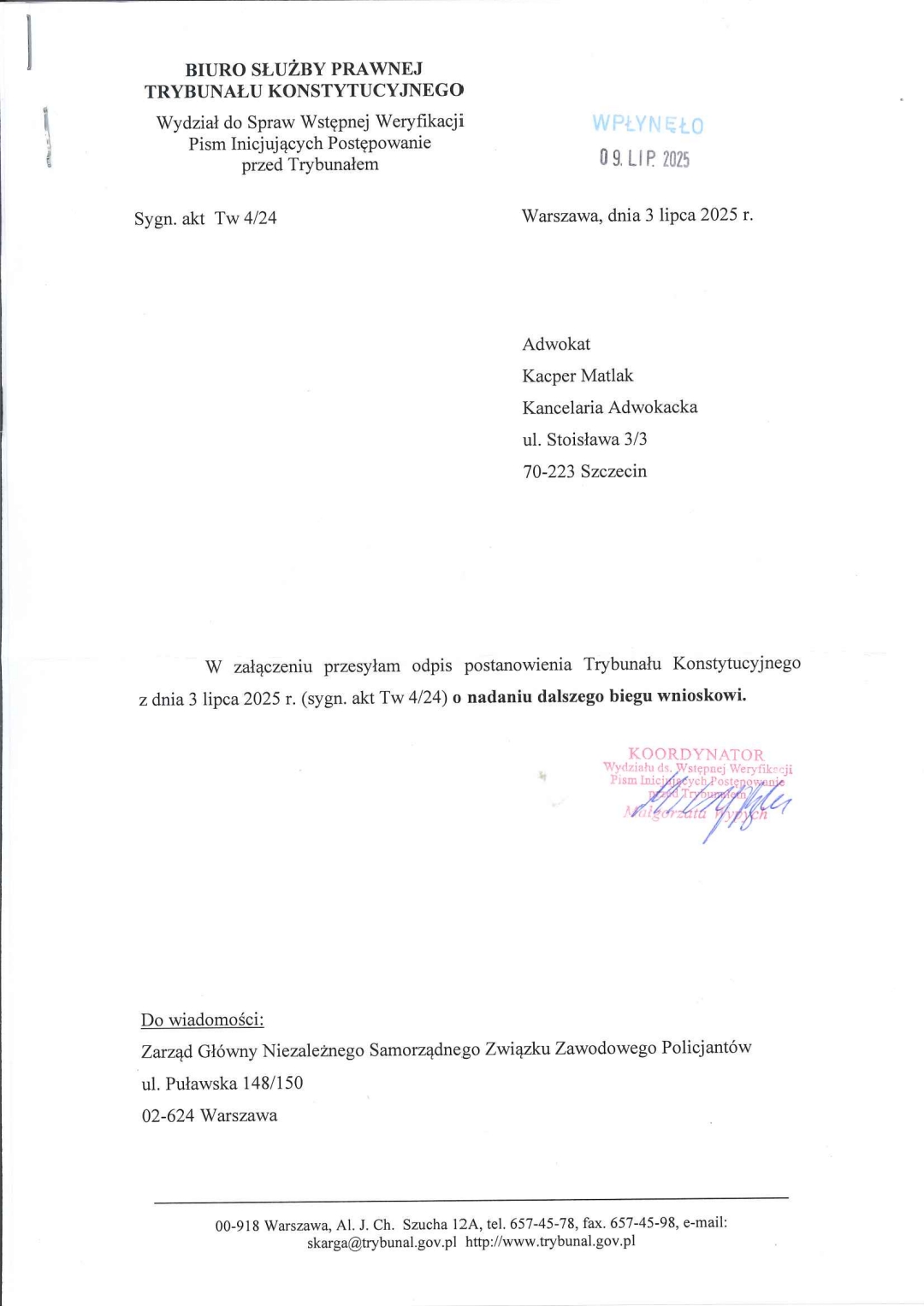 Opublikowano w Trybunał Konstytucyjny przyjął wniosek NSZZ Policjantów – ważny krok w walce o sprawiedliwe rozliczanie dyżurów domowych