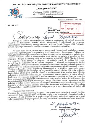 Zarząd Główny NSZZ Policjantów z apelem do Premiera Tuska