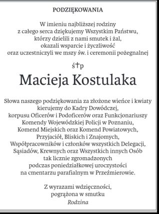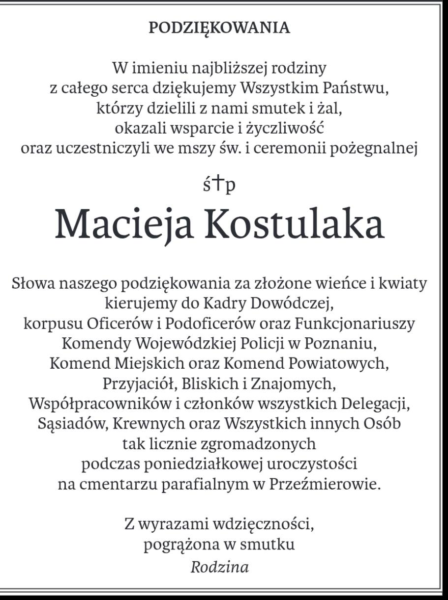 PODZIĘKOWANIA OD RODZINY PODINSP. MACIEJA KOSTULAKA!