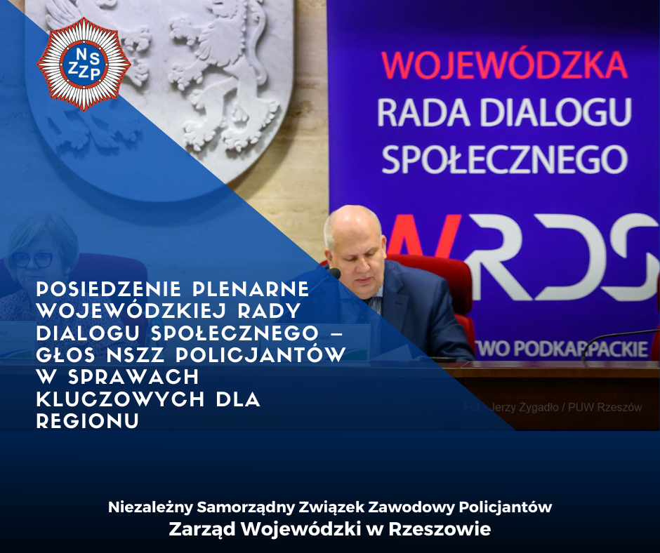 Posiedzenie plenarne Wojewódzkiej Rady Dialogu Społecznego – głos NSZZ Policjantów w sprawach kluczowych dla regionu